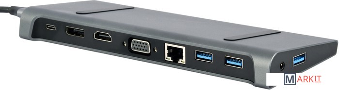 | Все разъемы на адаптере | USB-A 3.2 Gen1 (5 Гбит/с), USB-A 2.0, USB-C 2.0, HDMI, DisplayPort, VGA, RJ-45, 3.5 мм jack |