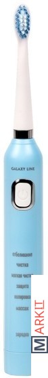 Аккумуляторная зубная щетка GALAXY LINE GL4980 – это современный, удобный прибор личной гигиены для чистки зубов, десен и языка в бытовых условиях. В комплекте одна сменная насадка-щетка со средней степенью жесткости. Таймер с 15-секундным интервалом сообщает о необходимости смены места чистки. Таймер автоматического выключения срабатывает через 2 минуты непрерывной работы и сообщает об окончании цикла чистки. Щетка располагает шестью режимами, благодаря чему делает чистку зубов более персонализированной – отбеливание, чистка, мягкая чистка, защита от кариеса, полировка и массаж десен. Количество вибрирующих движений до 35000 в минуту, за счет чего щетка не только удаляет остатки еды, налёт из межзубного пространства и пародонтальных карманов, но и отбеливает зубы и массажирует дёсны. Электрощетка имеет энергоемкий Li-ion аккумулятор, что позволяет взять ее с собой в путешествие или командировку. Вам не придется искать розетку - зубная щетка GALAXY LINE GL4980 работает до 1,5 часов в непрерывном режиме без подзарядки. Заряжать щетку с помощью USB-кабеля можно от компьютера, через блок питания или через внешний аккумулятор, если Вы в дороге. Время полной зарядки составляет около 3 часов. Дополнительный комфорт обеспечивает USB-кабель, сменная насадка-щетка и защитный колпачок в комплекте. Электрическая зубная щетка GALAXY LINE GL4980 станет идеальным прибором в комплексном уходе за здоровьем ваших зубов, дёсен и полости рта в целом. Позвольте себе лучшее с техникой GALAXY LINE!