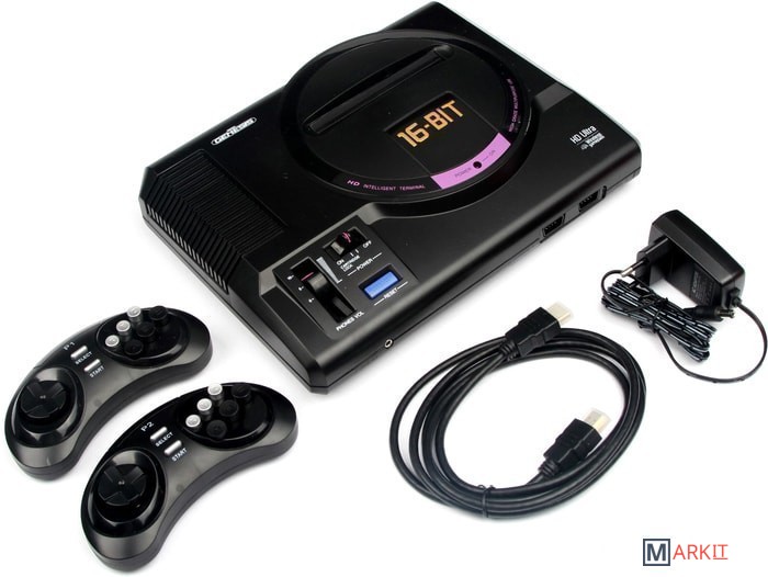 Игровая приставка Sega Retro Genesis HD Ultra в классическом корпусе подключается к телевизору с помощью кабеля HDMI. Модель оснащена функциями сглаживания изображения для комфортного воспроизведения игр на современных телевизорах. В комплекте 2 беспроводных геймпада.