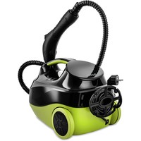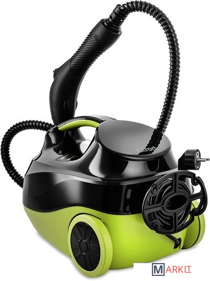 Kitfort КТ-9103 способен заменить паровую швабру, дезинфектор, стеклоочиститель, отпариватель. Горячий пар под давлением в 4 бара очищает разные поверхности, удаляет жир, известковые отложения, убивает патогенные микроорганизмы, отпаривает ткани.Скребок для стекла используется для чистки окон, зеркал, кафеля. Струйная насадка подходит для чистки плинтусов, щелей и других углов. Щётки - для удаления стойких загрязнений. С тряпкой можно отпаривать одежду, шторы, мягкую мебель. И это далеко не всё!В комплект, помимо различных насадок, входят также щётка для пола, тряпка, рамка для чистки ковров, удлинительные трубки, что делает КТ-9103 максимально универсальным устройством для очистки, глажки, дезинфекции самых разных поверхностей!Управление располагается на паровом пистолете. Вращение регулятора позволяет плавно регулировать интенсивность пара. Кнопка подачи пара располагается под пальцем. Предусмотрен блокиратор от случайного нажатия или для включения непрерывной подачи пара.Пароочиститель простой в управлении. На корпусе есть кнопка включения/выключения, индикаторы готовности пара и отсутствия воды.В комплекте с пароочистителем идёт мерный стакан для удобного добавления воды в бойлер.При отпаривании вам может понадобиться держатель для одежды. Откройте крышку отсека для принадлежностей и вставьте удлинительную трубку. На неё установите держатель для одежды.Длина шнура 2,8 м. Излишки вы всегда можете намотать на держатель шнура. Паровой пистолет можно убирать в специальное отверстие на передней части корпуса пароочистителя.